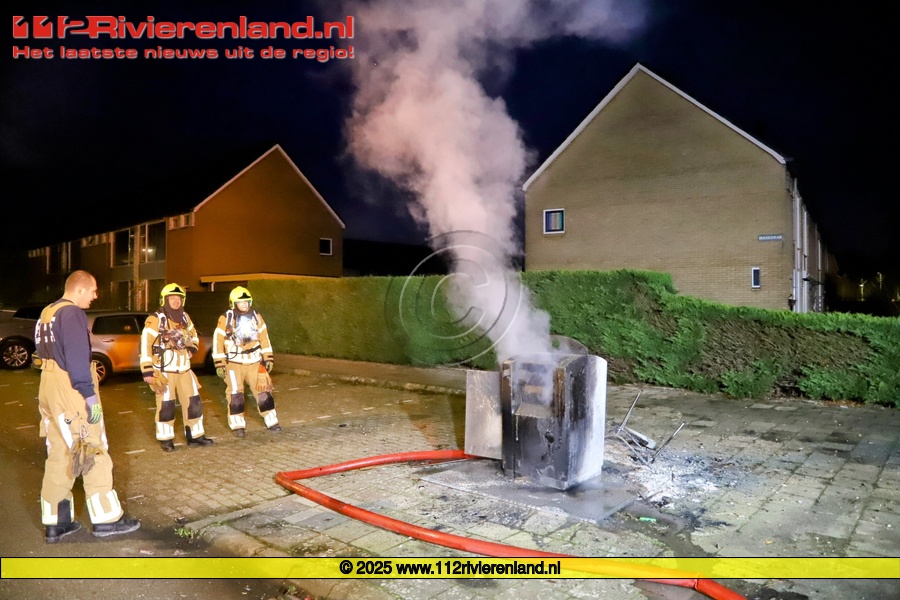 Tiel - Brandweer blust containerbrand