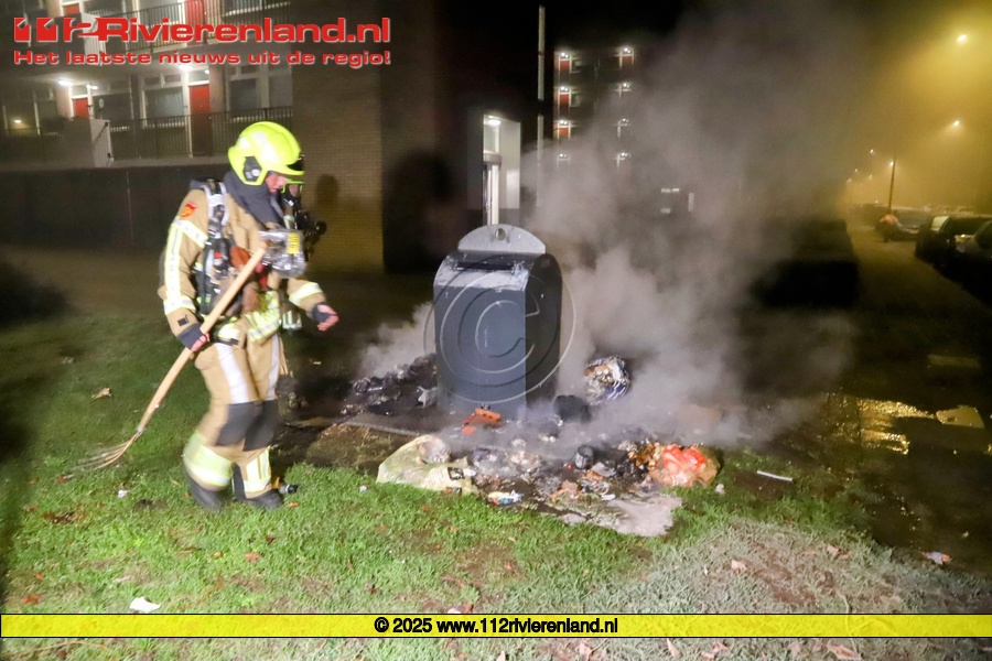 Tiel - Afvalbrand slaat ondergrondse container in