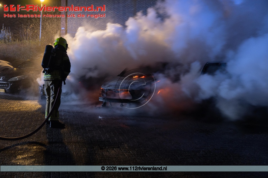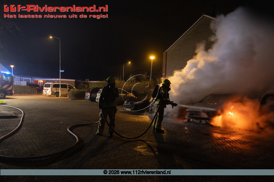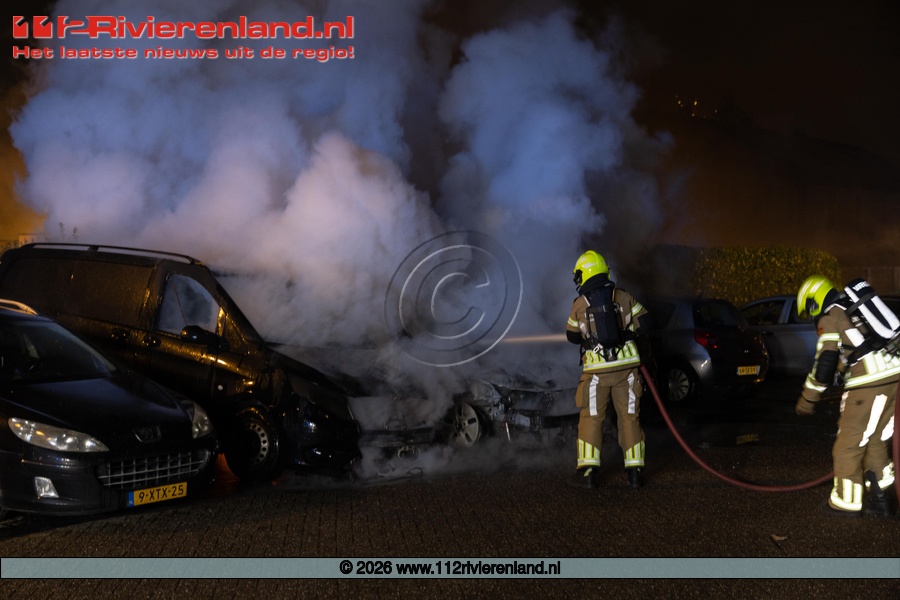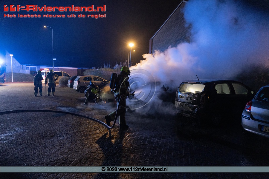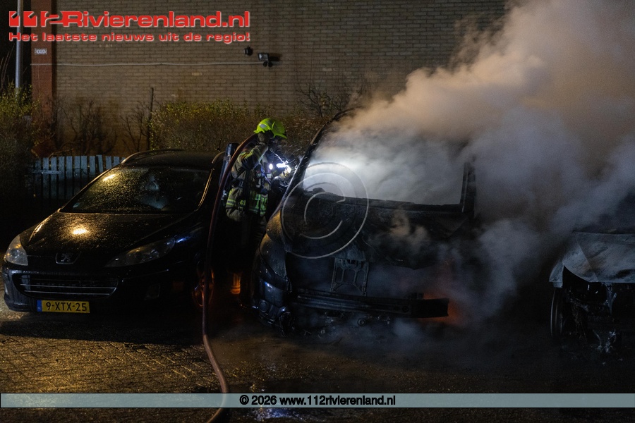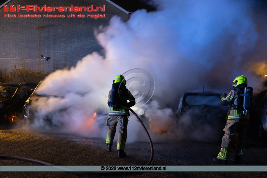 Tiel - drie auto's verwoest door brand Hennepe