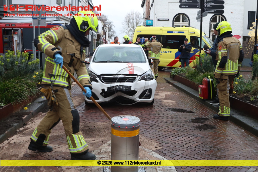 Tiel - Auto botst tegen poller