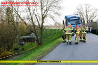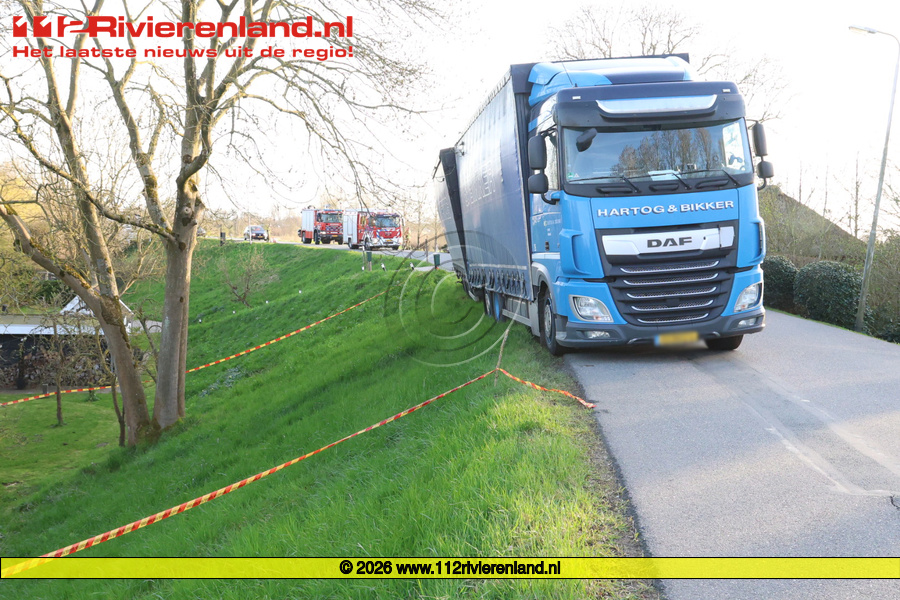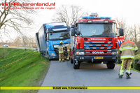 Spijk - Vrachtwagen met aanhanger in de problemen