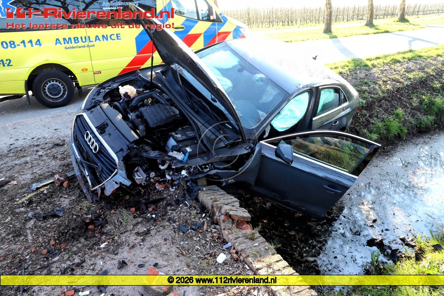 Waardenburg - Flinke schade bij ongeval Rijweg