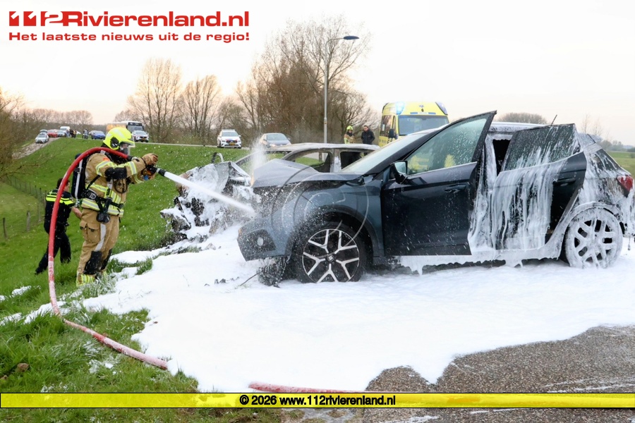 Culemborg - Frontale botsing leidt tot autobrand en gewonden