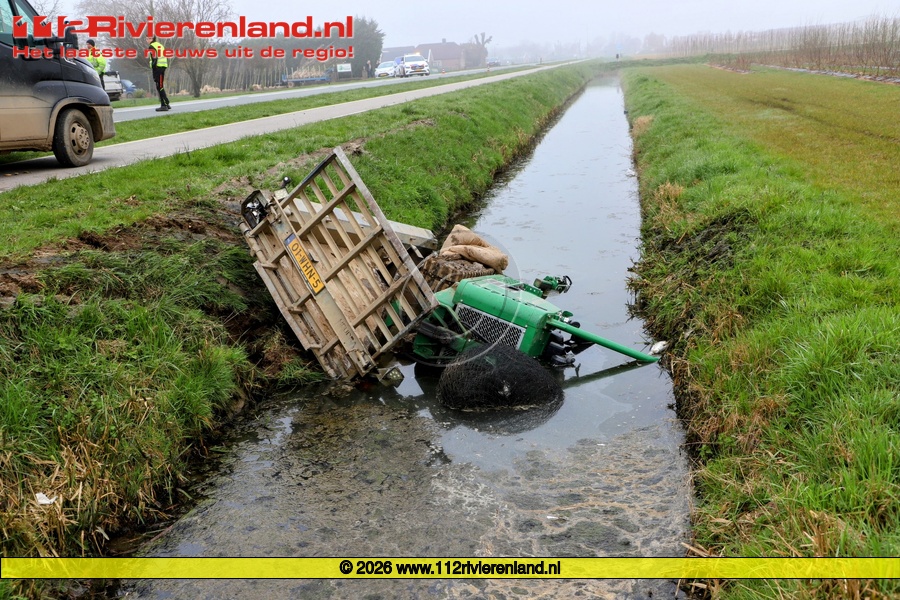 Spijk - Vrachtwagen met aanhanger in de problemen