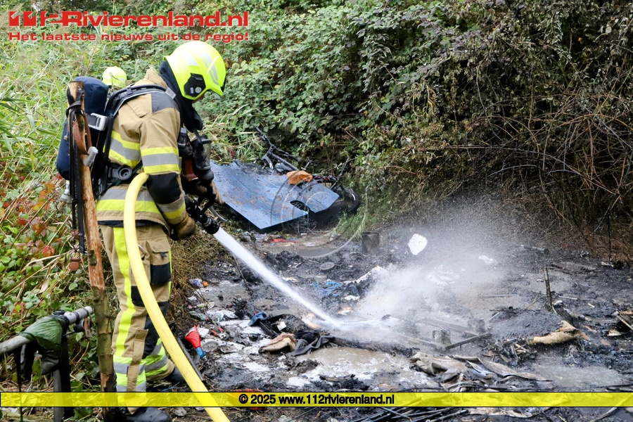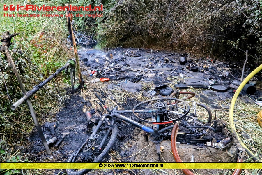 Eerst moest er worden onderzocht waar het brandden, omdat de brandweerauto er niet kon bijkomen. Het bleek te brandden op een zwervers plaats en kon alleen worden bereikt via een bos. Er stonden allerlei materialen in brand, waaronder fietsen.