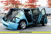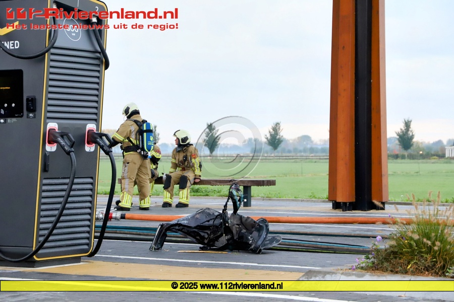 Bij aankomst van de brandweer bleek een elektrische auto volledig in brand te staan bij een elektrisch laadpunt. Deze stond geparkeerd onder een dak met zonnepanelen. De brandweer heeft zo snel mogelijk de vlammen gedoofd en de auto eronder vandaan getrokken. In verband dat het een elektrische auto betrof moet er een dompelbak ter plaatse komen. Ook was er naast het normale accupakket een extra accupakket gebouwd achterin de auto.