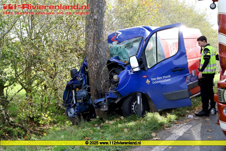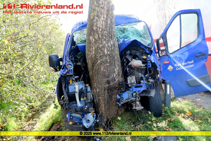 Hierbij botste een bedrijfsbus tegen een boom. Een man is door de brandweer bevrijd en met spoed overgebracht naar het ziekenhuis in Utrecht.