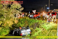 Alle gewonden zaten in het voertuig dat op de kop in een slootkwam. Ze zijn met onbekend letsel naar het ziekenhuis gebracht. Een vijfde inzittende bleef net als de bestuurder van het andere voertuig ongedeerd. De auto die in de sloot terechtkwam was het andere voertug aan het inhalen op het moment dat deze linksaf wilde slaan.