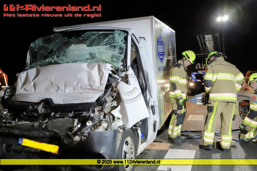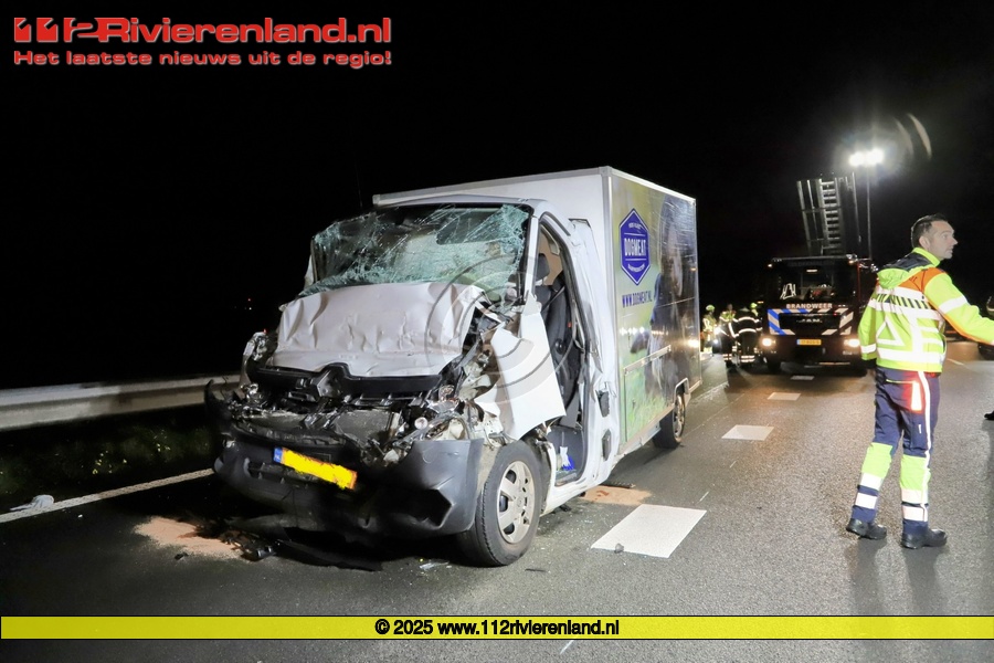 Op de A15 is dinsdagochtend vlak voor de afslag Geldermalsen een ernstig ongeluk gebeurd. De man in de bestelauto zat bekneld en moest door de brandweer worden bevrijd, deze is met spoed naar het ziekenhuis gebracht.