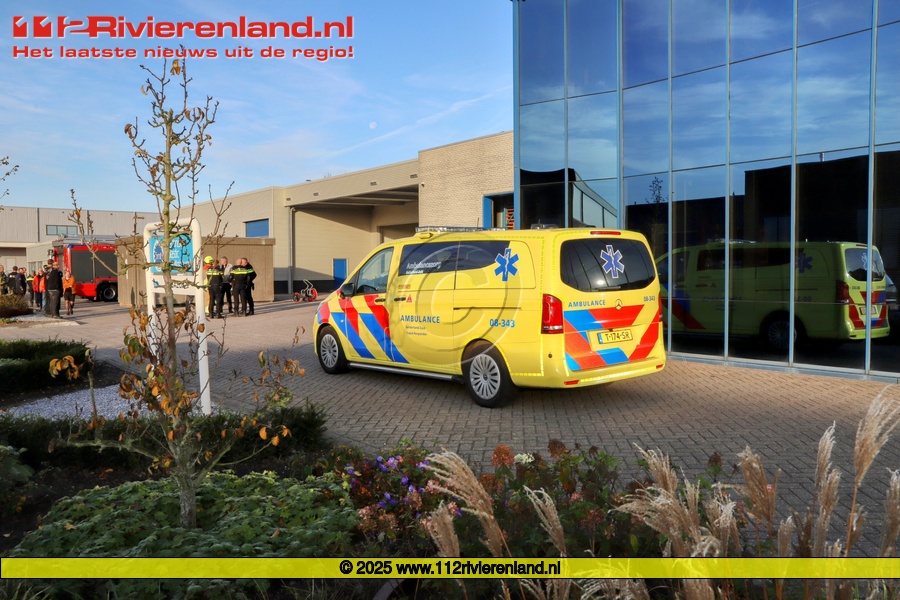Er zijn twee personen met de ambulance overgebracht naar het ziekenhuis, waarvan één met spoed. Uit de roldeuren van het bedrijf kwam lichte rook naar buiten.