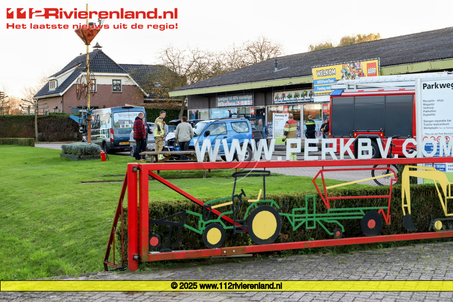 Bij een mechnisatiebedrijf stond er op het parkeerterrein een auto die mogelijk vlam zou hebben gevat.