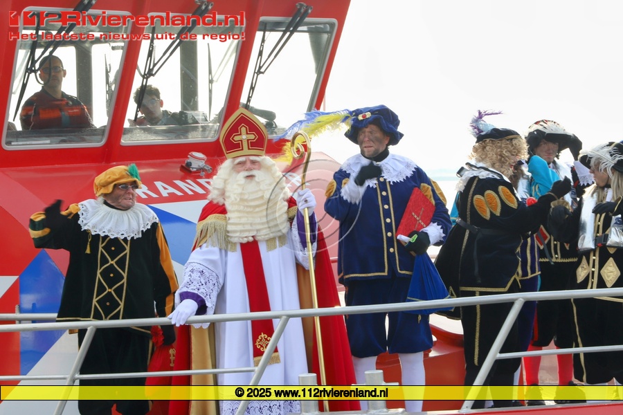 De Sint en Pieten kwamen met de blusboot van de brandweer en werden op de Waalkade ontvangen door honderden kinderen.