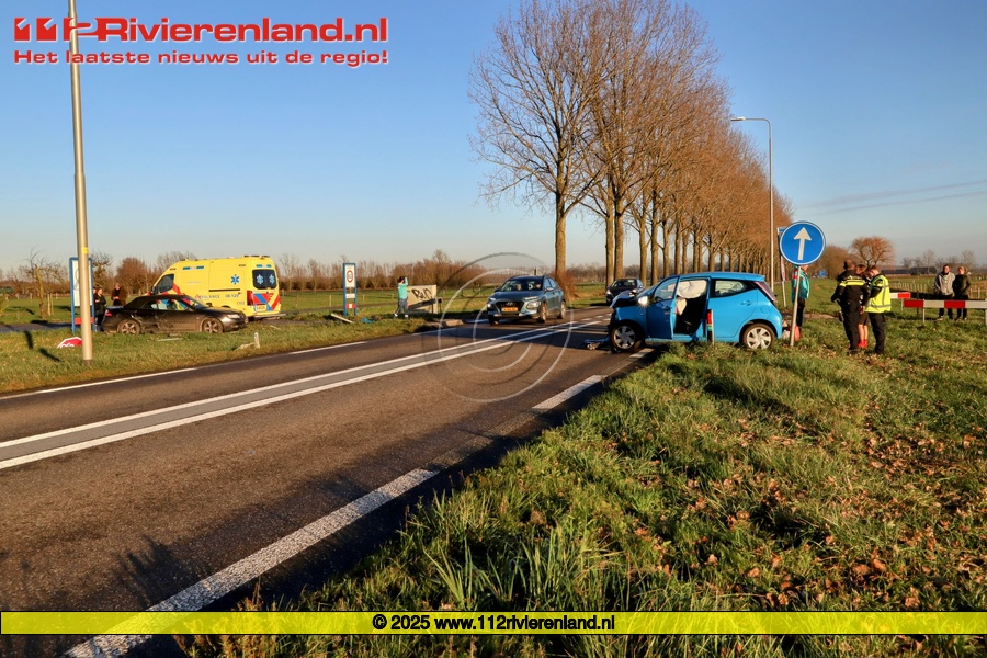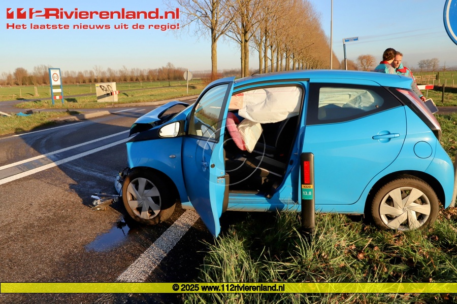 Een personenauto die de Provincialeweg wilde oversteken werd geraakt door personenauto die reed op de N320 richting Maurik. Door de klap kwamen beide auto's in de berm terecht en de airbags uit. De auto's raakten total loss.
