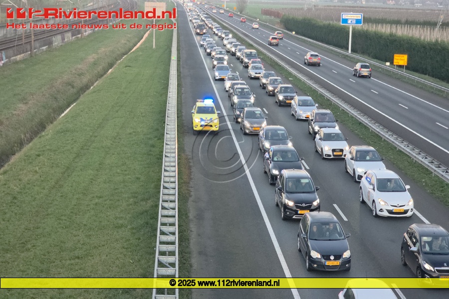 Tussen de afslag Tiel-West en Wadenoijen vond een aanrijding plaats, waarbij drie voertuigen bij betrokken waren. Er kwamen twee ambulances ter plaatse. Het is niet bekend, of er personen zijn overgebracht naar het ziekenhuis.