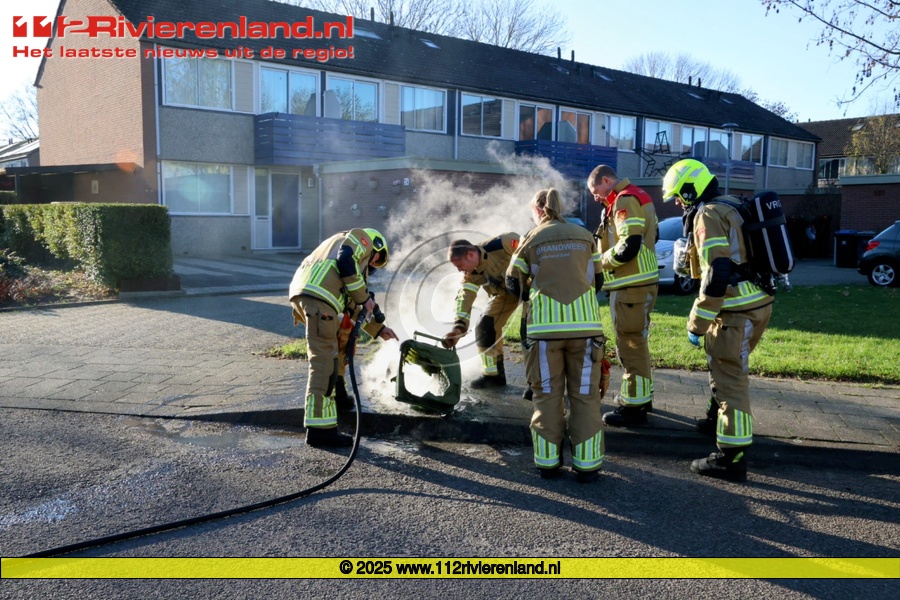 Een buurtbewoner heeft de eerste blussing gedaan met een emmer water en de brandweer heeft nageblust.