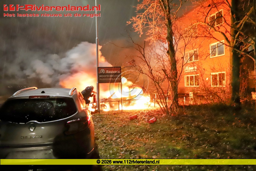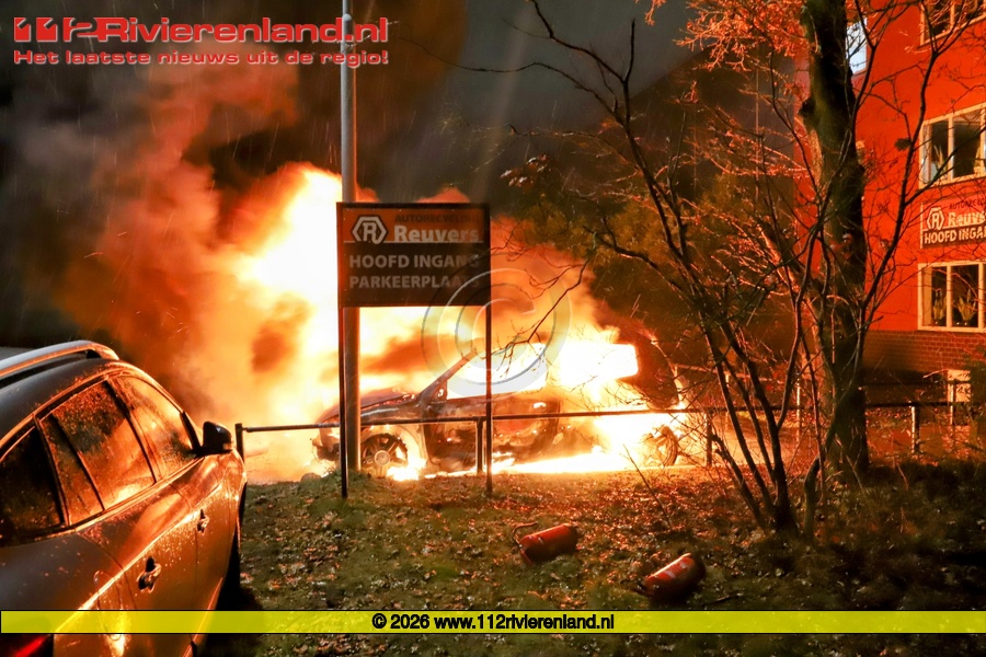 Bij aankomst van de brandweer stonden er twee personenauto's in brand voor het pand van sloopbedrijf Reuvers. Met een aantal brandblussers was al geprobeerd een eerste blussing te doen. Beide voertuigen brandden volledig uit.