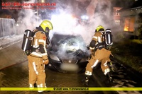 Bij aankomst van de brandweer stond het voertuig aan de voorzijde in brand. De brandweer heeft de motorkap met een spreider open moeten maken om de vlammen eronder te kunnen blussen.
