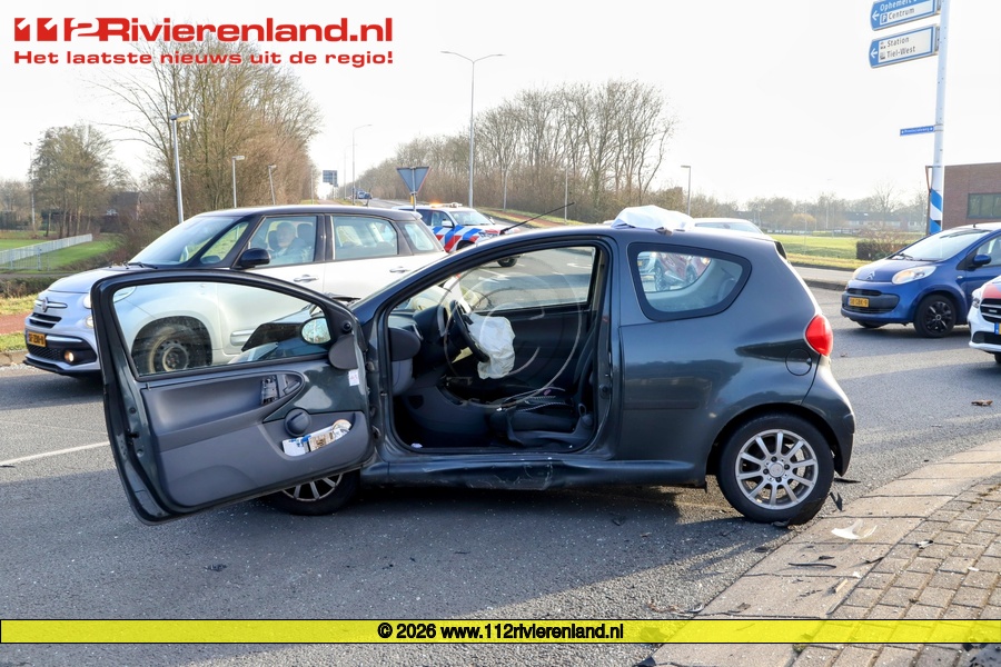 Donderdag om 14.00 uur werd er een ongeval gemeld op de Rivierenlandlaan. Op de Berenkuil bleken twee personenauto's met elkaar hard in botsing te zijn gekomen, waarvan er één tegen de vangrail tot stilstand kwam.