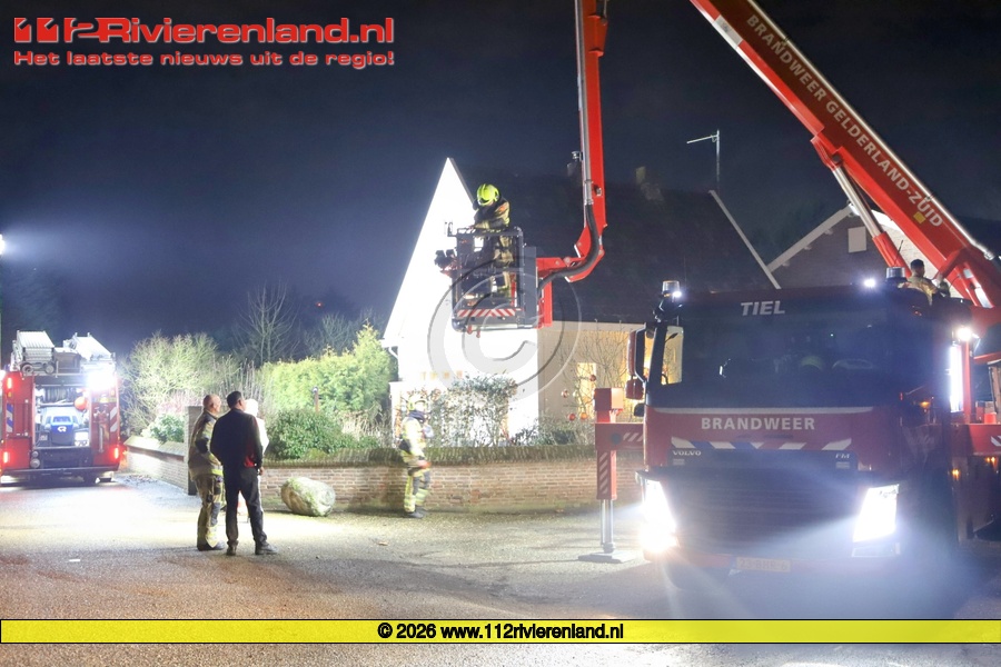 De brandweer van Buren was snel ter plekke en kreeg hulp van het brandweerkorps uit Tiel, die een hoogwerker meebrachten.