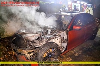 Bij aankomst van de brandweer bleek een personenauto in brand te staan. Omwonenden hadden een harde knal gehoord en zagen vervolgens het voertuig op de parkeerplaats in brand staan.