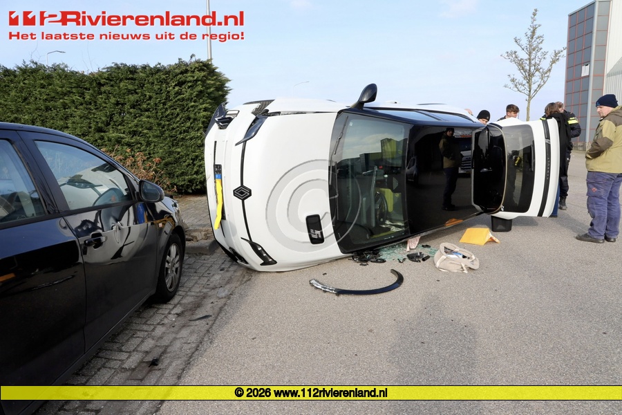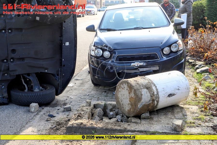 Het betrof een eenzijdig ongeval, waarbij een vrouw in een auto tegen een paal reed langs de kant van de weg. Door de klap belandde het voertuig op de zijkant. Ze raakte bij het ongeval niet gewond. Door omstanders werd ze uit de auto gehaald.