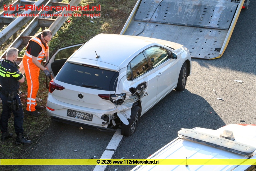 Woensdag om 16.30 uur werd er een ongeval gemeld op de A15 richting Rotterdam ter hoogte van het viaduct van de Rivierenlandlaan.