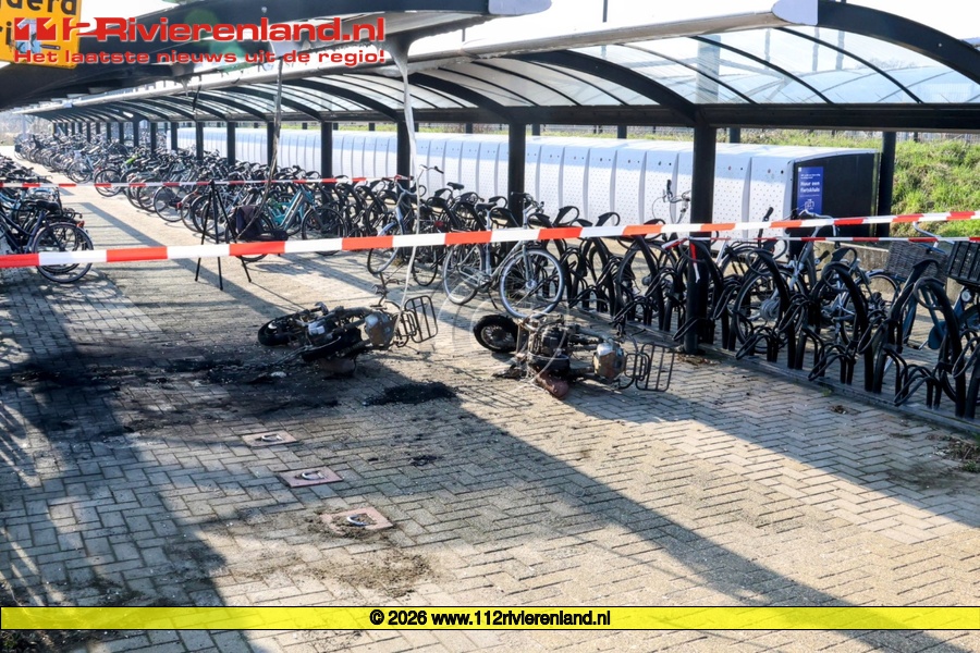 Woensdag om 12. 33 uur werd er een scooterbrand gemeld bij het NS station Tiel - Passewaaij. Bij aankomst van de brandweer bleken er twee scooters in brand te staan onder de rijwieloverkapping.
