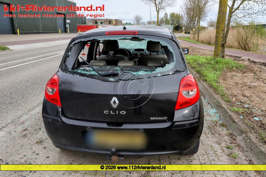 Op de Kellenseweg staat er een geparkeerde, waarvan alle autoruiten zijn vernield.