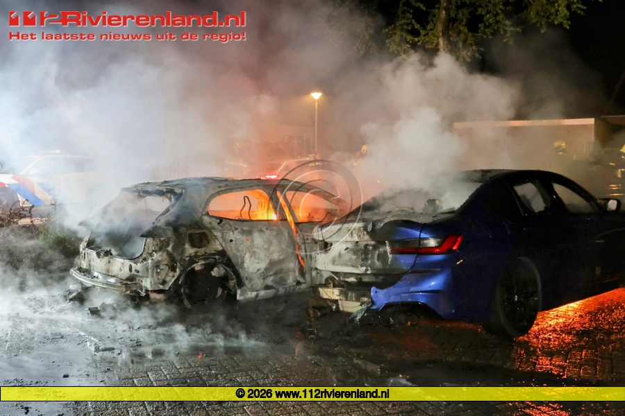 Tiel - Twee auto's branden uit aan de Binnenweg