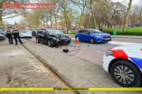 De bestuurster in een personenauto bleek te zijn flauw te zijn gevallen en reed een verkeerspaal en een lantaarnpaal uit de grond. Ze is nagekeken door de ambulancedienst, maar hoefde niet mee naar het ziekenhuis.